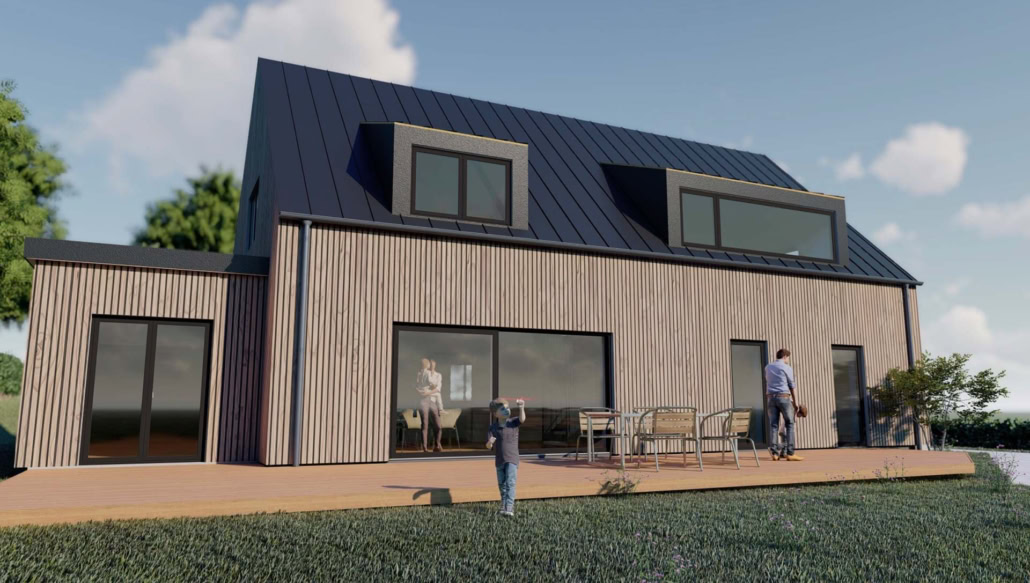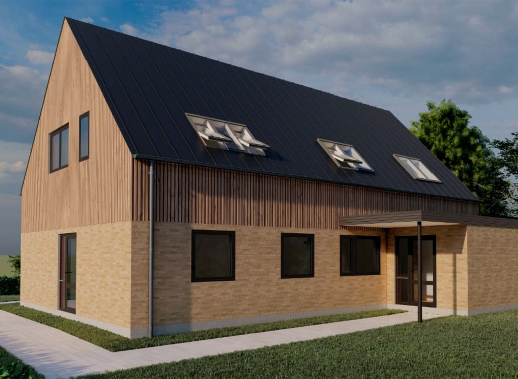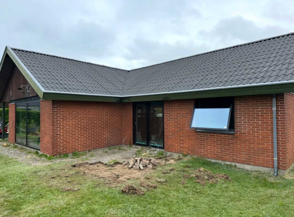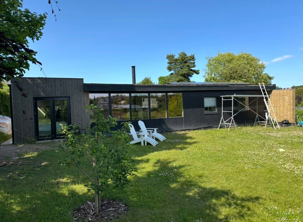 Forvandlingen af et af 60’er-stuehus med fladt tag til en moderne bolig i 2026 med 1. sal og 115 m² ekstra.