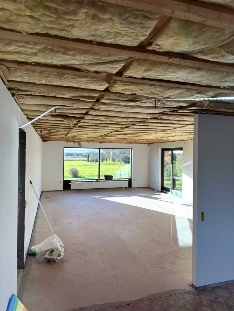 Fra gammelt, lavt loft og skillevæg mellem stue og køkken til åbent køkken-alrum med loft til kip.