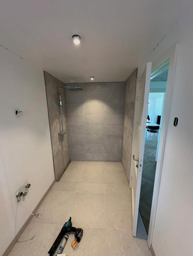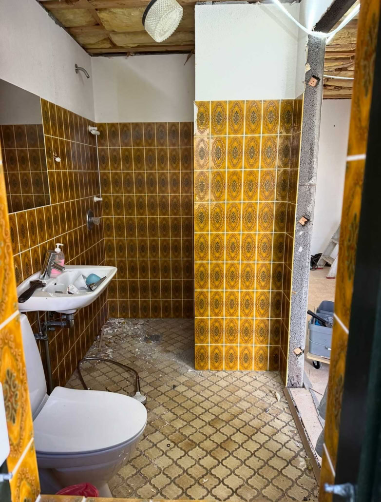 Fra 70’er look til et nyt, moderne bad med gulvvarme og spot i loftet.